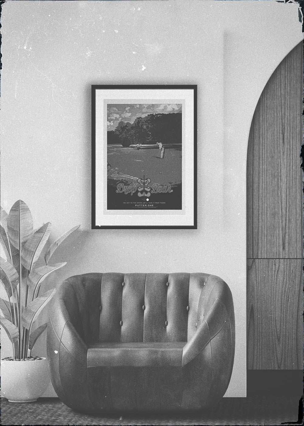 Who doesn’t love a vintage poster? Drop Bear Golf celebrates the release of Putter.One with our first edition. Designed by our founder, it’s a must-have for the cave, the clubhouse or dare we say, even the garage. A modest but bold A4 size (29.7 cm x 42 cm or 11.7 in x 16.5 in.) printed on recycled art stock, unframed.